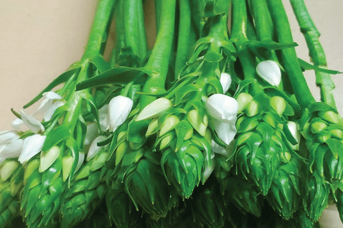 Ornit Fuji has star shaped flowers with grossy green leaves .